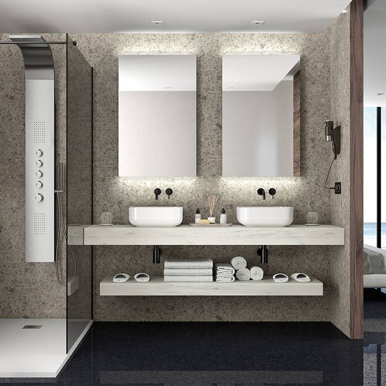 Dans la série Compakt propose des plans à travail pour poser la vasque, des vasques semi-encastrée ou des vasques intégrée. On peut retrouver également des plan d'une vasque mais également des doubles vasques. La gamme dispose de plusieurs coloris qui sont :