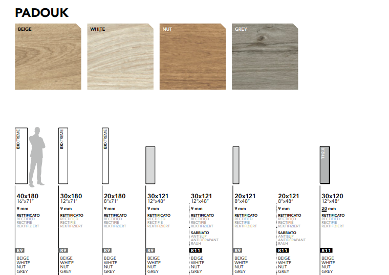 Il est rectifié, en grès cérame coloré dans la masse, en R11 et de 20mm d'épaisseur.