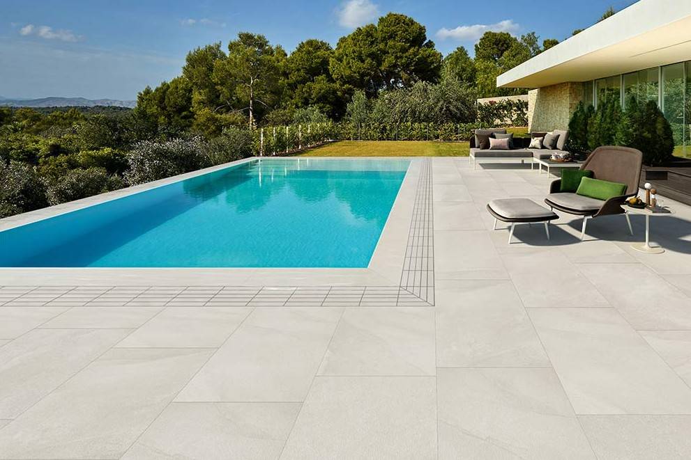 Vous pouvez poser ce carrelage sur des plots pour votre terrasse ou votre tour de piscine.