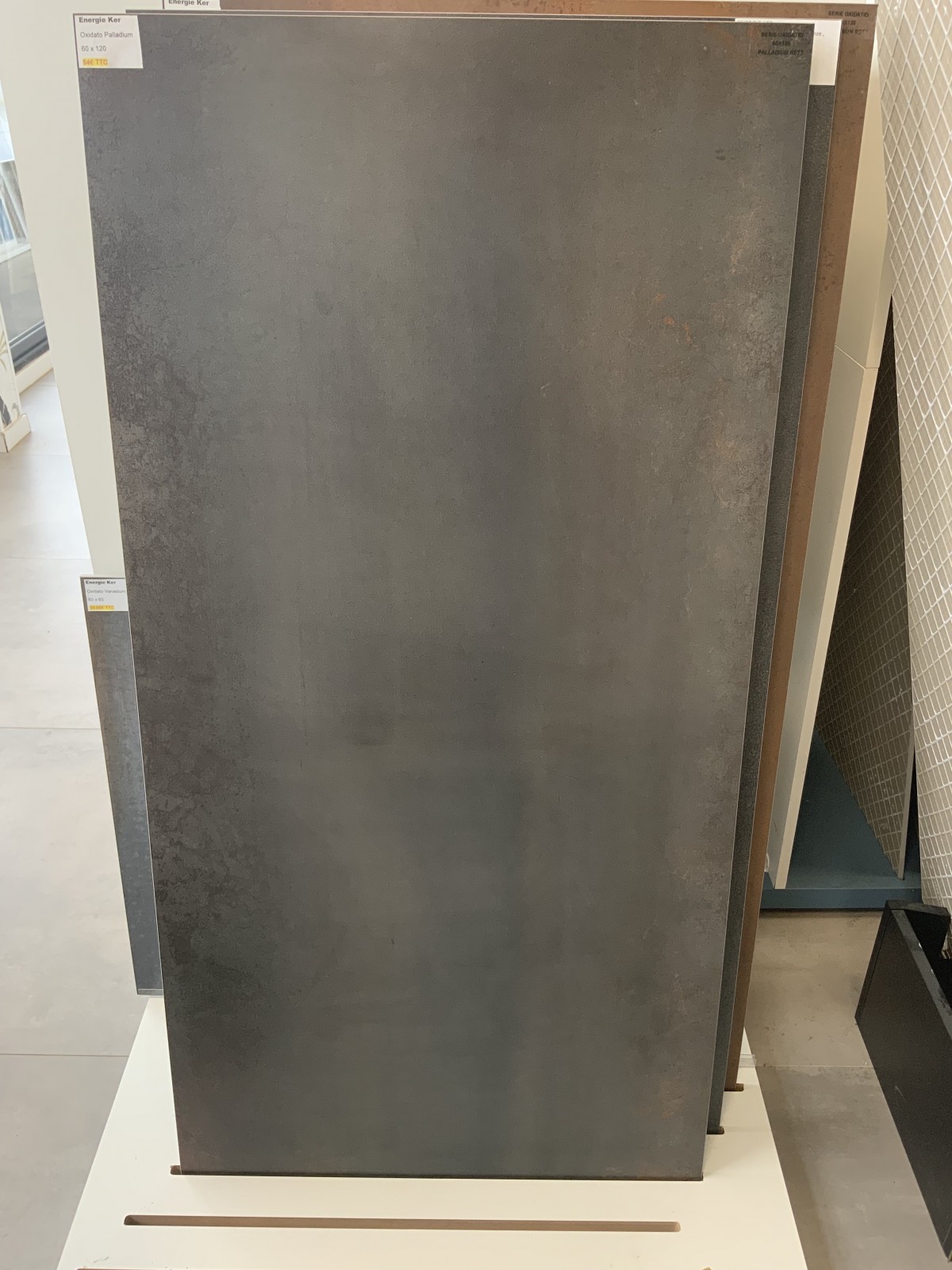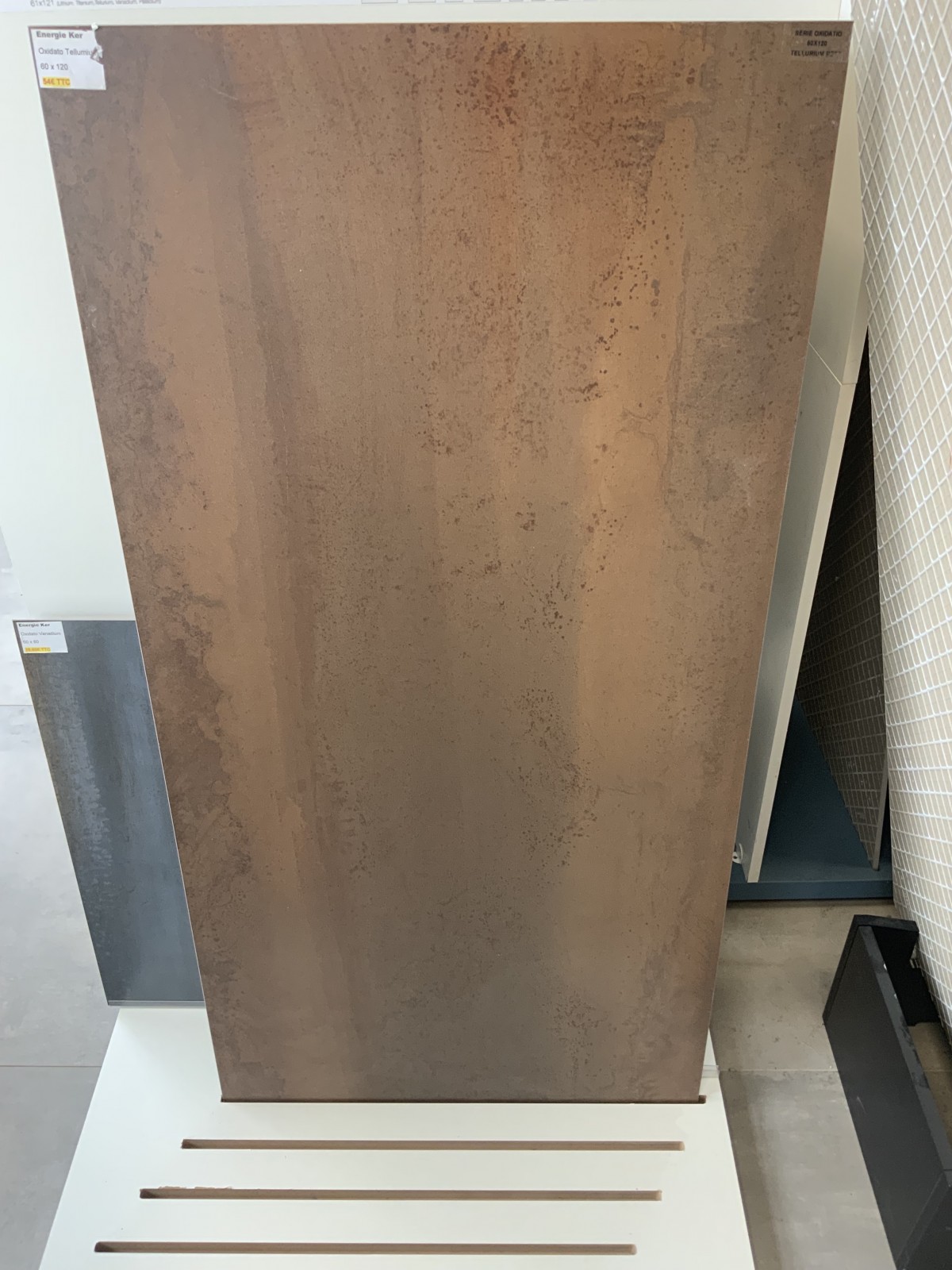 carreau en 60x120 effet oxidé sur la couleur de base.