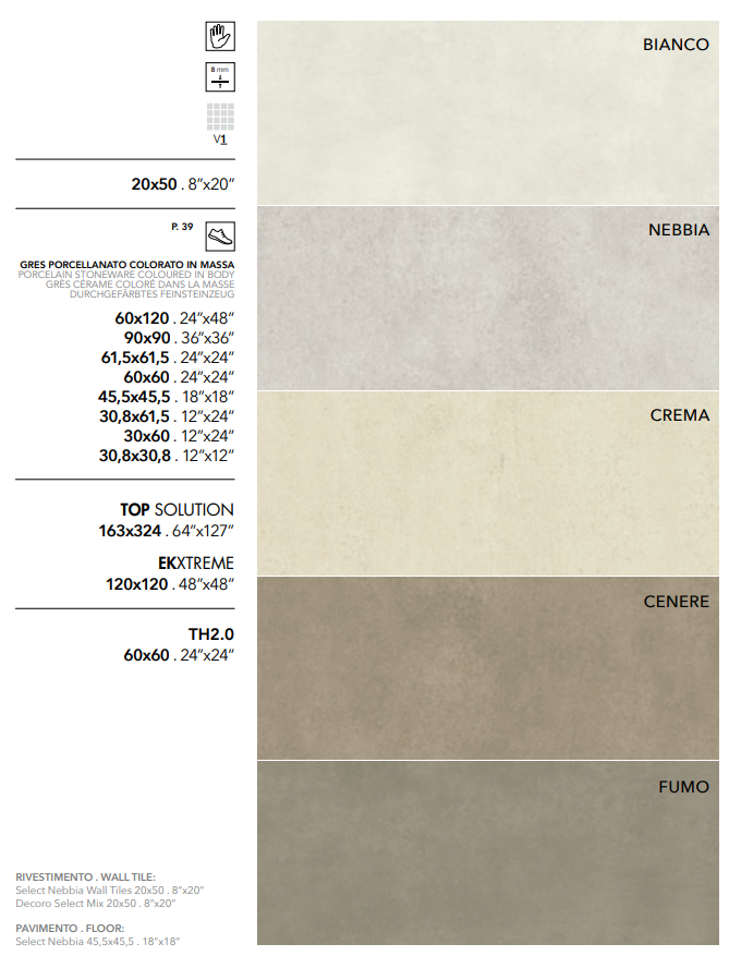 La version Select, en céramique, propose cinq couleurs chaudes pour définir, avec l'effet béton, les murs de la salle de bain.